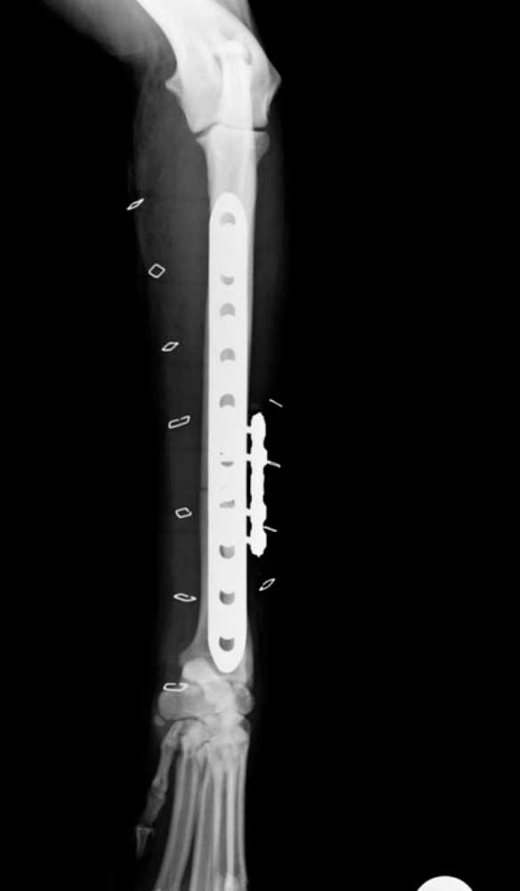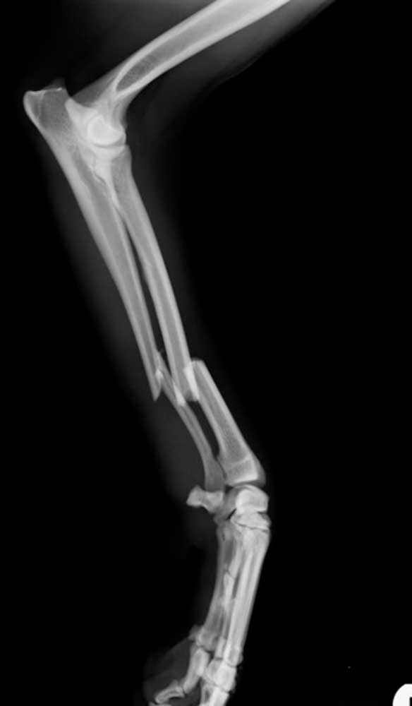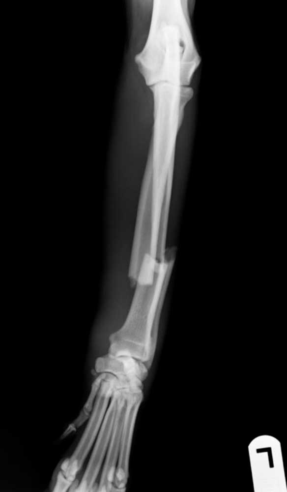 Aska, 4 leta, ne stopi na prednjo levo nogo.