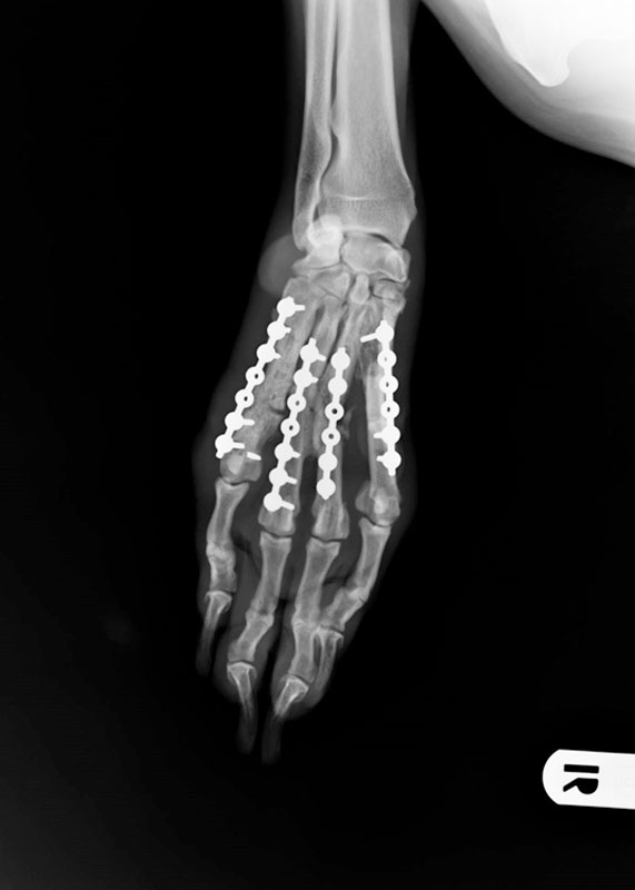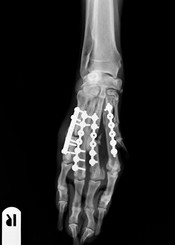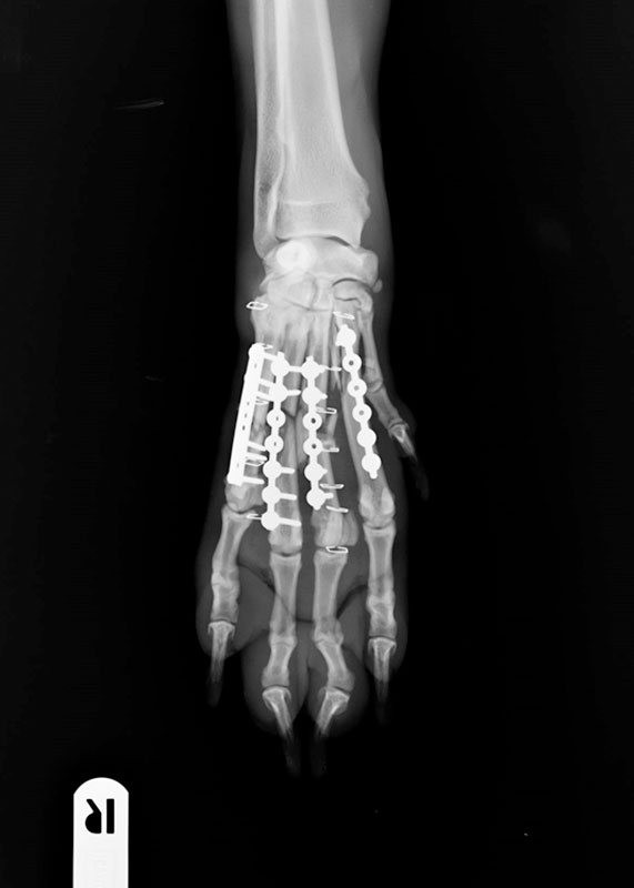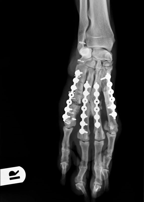 Ugotovitve: zlom vseh stopalnic prednje desne noge Kirurško zdravljenje
